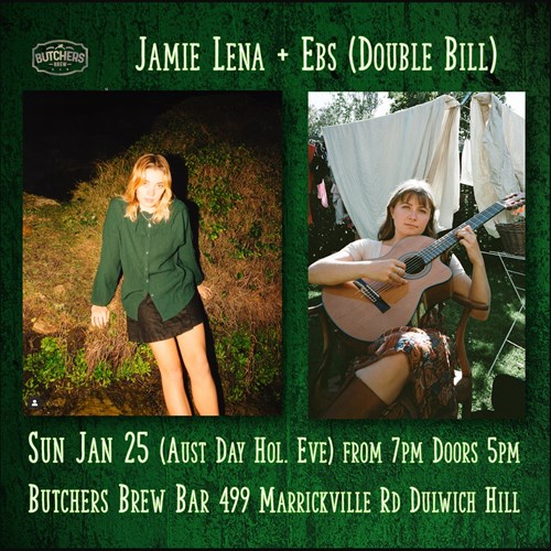 Sun, 25 Jan JAMIE LENA (ADEL) + EBS (DOUBLE BILL) *AUST DAY... Butchers Brew Bar 499 Marrickville Rd, Dulwich Hill |