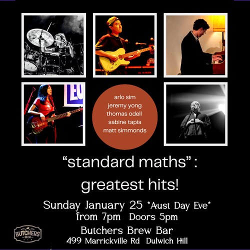 Sun, 25 Jan STANDARD MATHS *AUST DAY HOLIDAY EVE* - LIVE AT... Butchers Brew Bar 499 Marrickville Rd, Dulwich Hill |