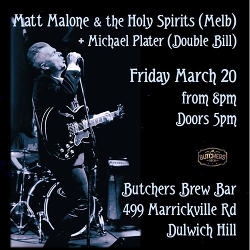 Fri, 20 Mar MATT MALONE & THE HOLY SPIRITS + MICHAEL PLATER... Butchers Brew Bar 499 Marrickville Rd, Dulwich Hill |