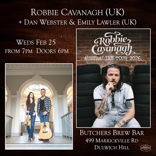 Wed, 25 Feb ROBBIE CAVANAGH (UK) + DAN WEBSTER & EMILY... Butchers Brew Bar 499 Marrickville Rd, Dulwich Hill |
