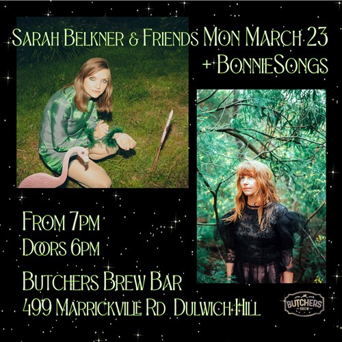 Mon, 23 Mar SARAH BELKNER & BONNIESONGS - LIVE AT BUTCHERS... Butchers Brew Bar 499 Marrickville Rd, Dulwich Hill |