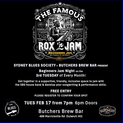 Tue, 17 Feb SYDNEY BLUES SOCIETY BEGINNERS JAM NIGHT - LIVE AT... Butchers Brew Bar 499 Marrickville Rd, Dulwich Hill |