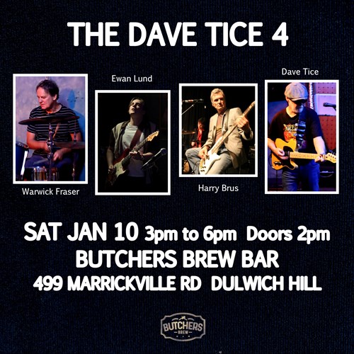 Sat, 10 Jan THE DAVE TICE 4 - LIVE AT BUTCHERS BREW BAR! Butchers Brew Bar 499 Marrickville Rd, Dulwich Hill |