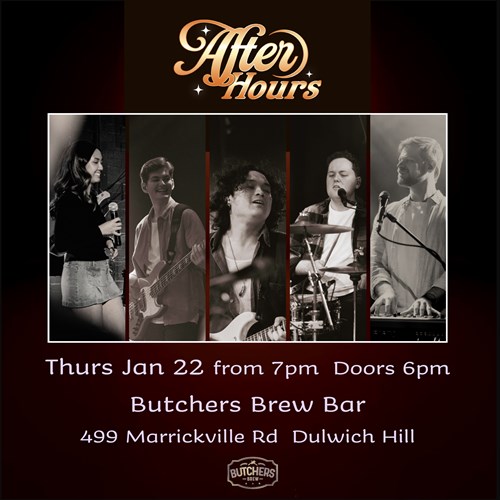 Thu, 22 Jan A NIGHT HOSTED BY AFTER HOURS - LIVE AT BUTCHERS... Butchers Brew Bar 499 Marrickville Rd, Dulwich Hill |