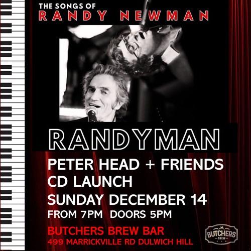 Sun, 14 Dec PETER HEAD + FRIENDS: RANDYMAN CD LAUNCH - LIVE AT... Butchers Brew Bar 499 Marrickville Rd, Dulwich Hill |