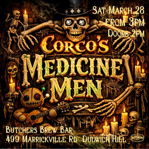 Sat, 28 Mar CORCO'S MEDICINE MEN - LIVE AT BUTCHERS BREW BAR! Butchers Brew Bar 499 Marrickville Rd, Dulwich Hill |