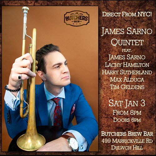 Sat, 3 Jan JAMES SARNO (NY) QUINTET - LIVE AT BUTCHERS BREW BAR! Butchers Brew Bar 499 Marrickville Rd, Dulwich Hill |