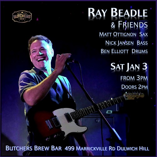 Sat, 3 Jan RAY BEADLE & FRIENDS - LIVE AT BUTCHERS BREW BAR!! Butchers Brew Bar 499 Marrickville Rd, Dulwich Hill |