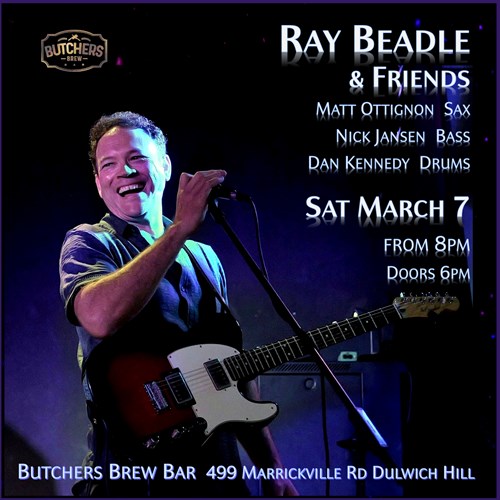 Sat, 7 Mar RAY BEADLE & FRIENDS - LIVE AT BUTCHERS BREW BAR!! Butchers Brew Bar 499 Marrickville Rd, Dulwich Hill |
