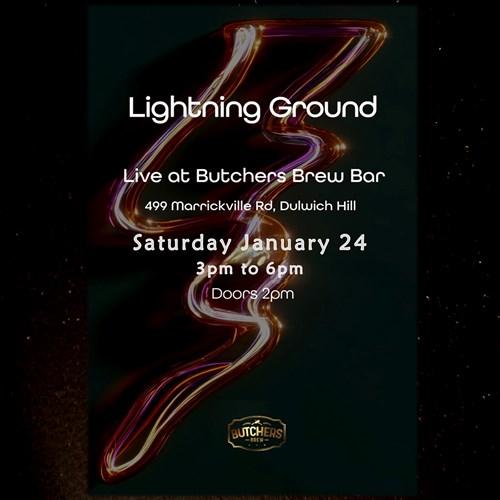 Sat, 24 Jan LIGHTNING GROUND - LIVE AT BUTCHERS BREW BAR! Butchers Brew Bar 499 Marrickville Rd, Dulwich Hill |